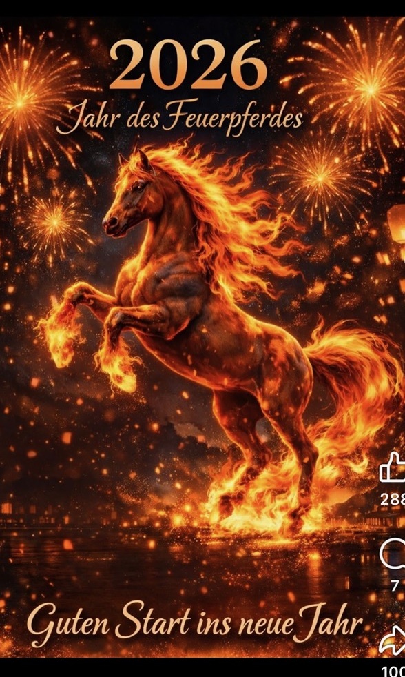 Ich wünsch euch einen wunderschönen, ruhigen, friedlichen Abend mit schönem Jahresausgang und uns Allen einen guten Rutsch in neue Jahr. 2026 ist das Jahr des Feuerpferdes und soll uns viel guten Wind und Energie bringen.