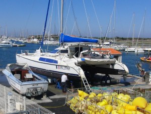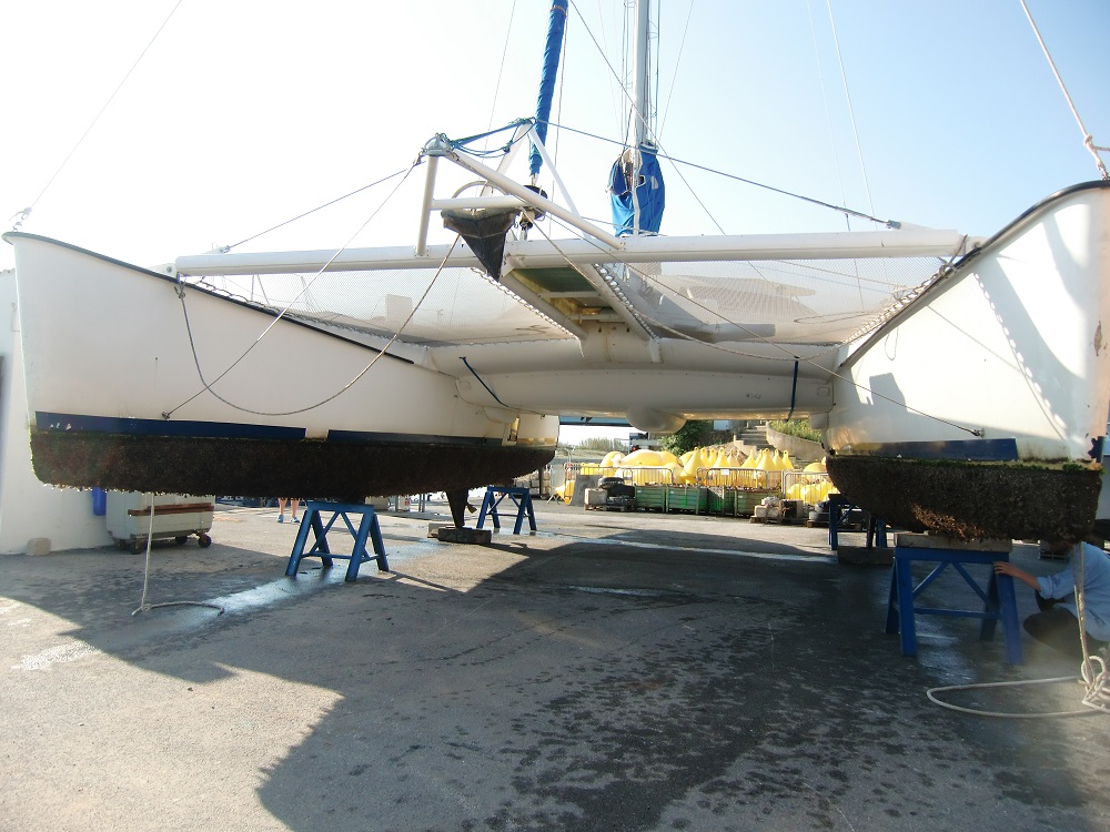 7:00 Beide Handy Wecker läuten uns wach. Flott anziehen, einen Kaffee trinken, Boot losbinden und zum Kranen vorbereiten.