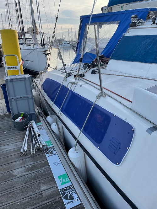 Wir haben mal mit den kleinsten Abdeckungen seitlich begonnen. Diese kann man leichter Händeln hier beim zuschneiden.