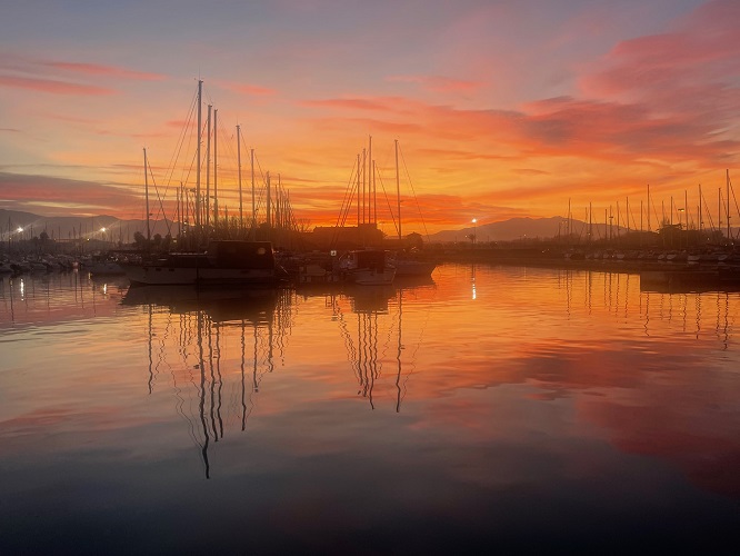 Angeblich, wenn das Abendrot besonders bunt ist, kommt Mistral am nächsten Tag. Ja leider, ist uns schon klar.