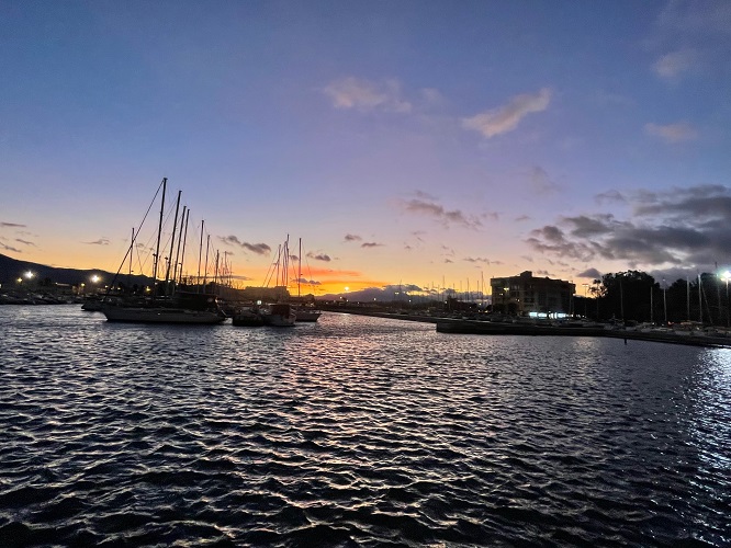 3.00 Pünktlich wie angesagt, beginnt der NW wind zu fauchen. Wir sind sofort wach und hören noch ein bisschen hinein, ob es noch ein weiteres Geräusch gibt an Bord, ob etwas umfällt oder fremde Geräusche macht. Wir haben alles Wind fest verstaut gestern Abend, aber man kann ja nicht wissen, was dem Wind so einfällt. irgendwann schlafen wir dann beide wieder ein.