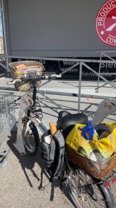 Meinen Einkauf aufs Fahrrad verfrachten wird spannend. Ich hab so achtsam eingekauft und mir immer wieder gesagt, du hast nur ein Fahrrad, bei jedem Stück das ich kaufen wollte. Trotzdem ist es richtig voll bepackt und der Rest ist in meinem Rucksack. Aber so ein Fahrrad hält ja einiges aus.