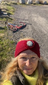 Nach dem Frühstück, es ist wunderschönes, mildes Wetter, geht Kurt eine Schichte Polyester auftragen und ich roller zur Rhone. Seine Stückelung ist ausgehärtet und bekommt jetzt einen Verbindungsstreifen mit Polyester. Dazwischen ein bisschen schleifen. Wie wir wissen, schleift er ja gerne.