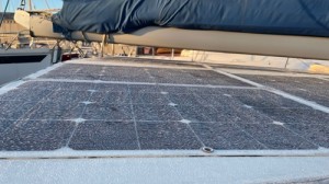 Kurt baut noch 2 Stützen ein in seine Solarplatten Halter und ich koche für morgen vor, weil ich glaube nach 20 km Rollern werden wir nicht im Stande sein, noch zu kochen.