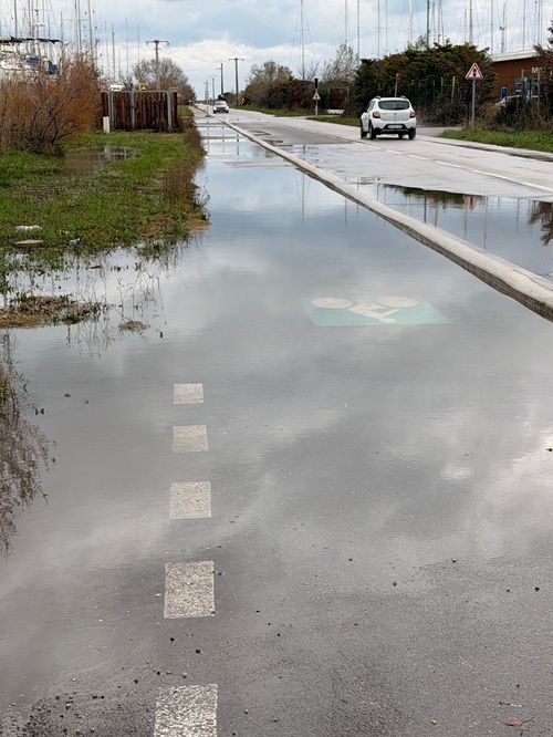 In Canet, in der Nähe unseres alten Stellplatzes weiter im Westen von Frankreich, steht der halbe Ort im Wasser. Es hört einfach nicht auf zu Regnen.