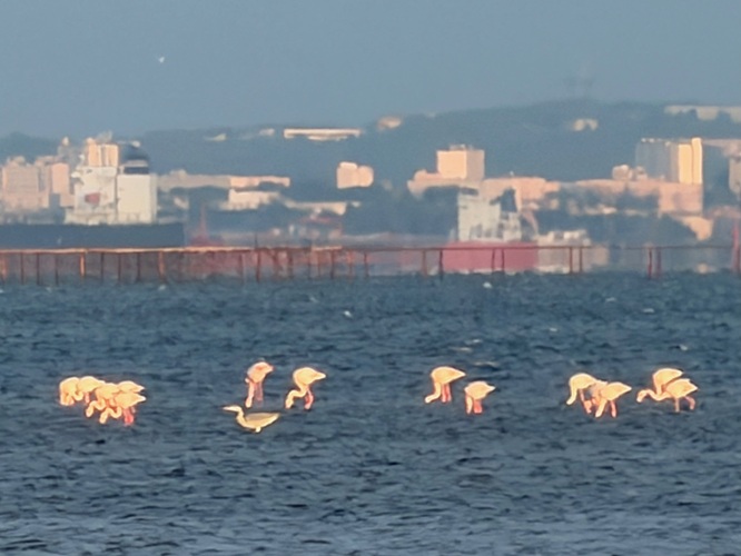 Die Flamingos stört die Kälte nicht, Hauptsache es gibt zu Essen.