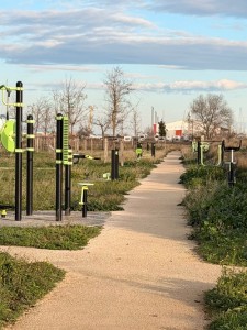 Es sind viele Menschen im Park mit kleinen Kindern, aber zu den Fitness- und Lockerungs- Geräten geht nie jemand.