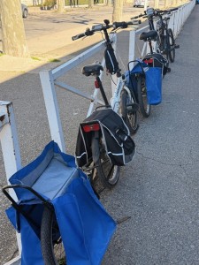 Mit dem Fahrrad hole ich noch Getränke aus dem Supermarkt für die Autofahrt.