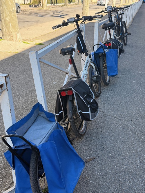 Dann stemmen wir die beiden schweren Fahrräder – ich kann nur sichern – die Badeleiter hoch. Sie bleiben ja hier. Unsere Roller sind schon am Fahrrad Träger am Wohnmobil montiert.