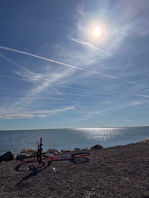 Im Sommer stemmen wir die Fahrräder dann wieder runter und binden sie aufs Wohnmobil, das normalerweise in der Marina stehen bleiben darf.
