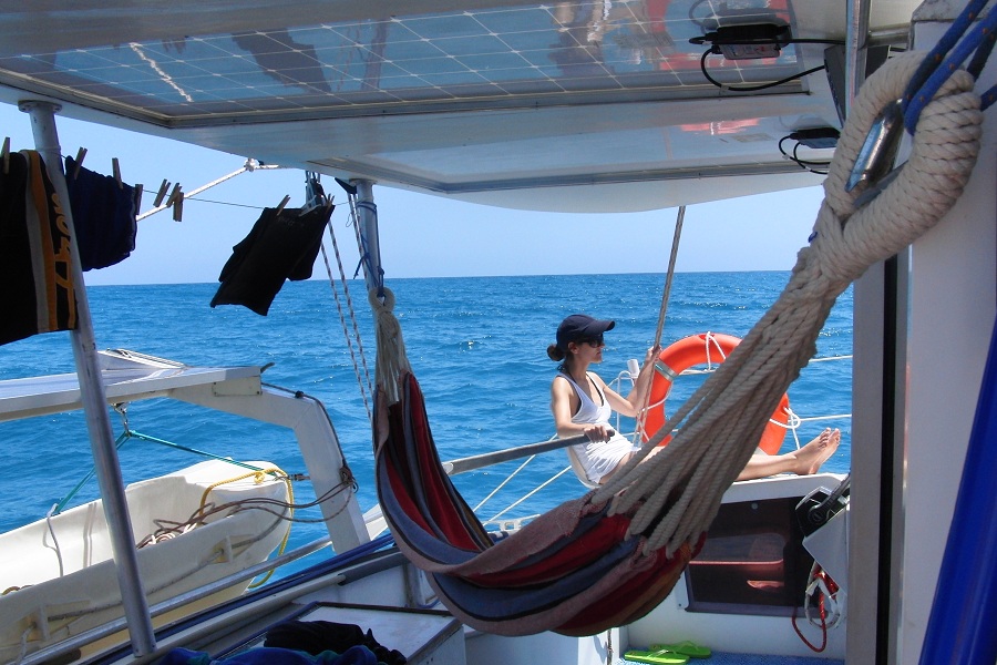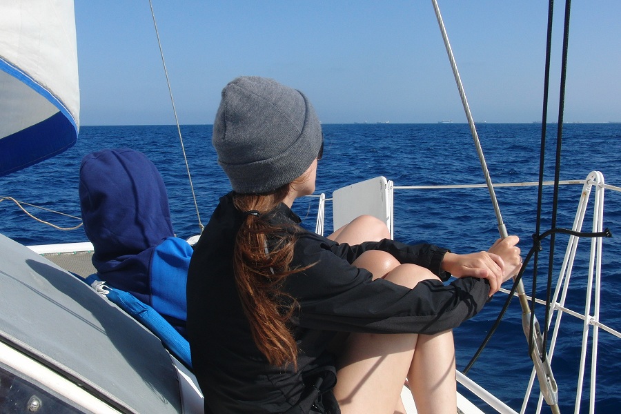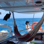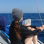 Christina steuert den ganzen Tag uns schön auf die hohen Wellen zu. Das lenkt sie auch ab und sie wird nicht mehr Seekrank! 1x ist ja auch genug!