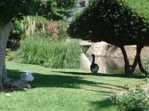 Also erforschen wir den Ort, suchen den Supermarkt und bewundern die Vogelwelt in den hübsch angelegten Parks. So viele Vogelarten, Enten, sogar Gänse finden wir hier.