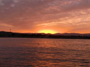 Wir ankern wieder im Hafen vor der Raffinerie. Ist zwar nicht romantisch, aber gratis. Und wir könnens kaum glauben, alle Strände vor der Raffinerie sind voller Menschen. Die Spanier sind nicht heikel und lassen sich das Baden im Meer nicht nehmen, wenn Urlaubszeit ist, auch wenn das Meer an der Stelle für unsere Verhältnisse grindig ist.