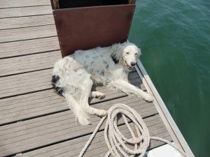 Bianca, der weisse Setterhund ist heute morgen mit seinen Besitzern mit dem Auto abgereist. Vielleicht sehen wir uns wieder hier, wenn wir von unserer Reise zurückkommen. Jedesmal beim Vorbeigehen an ihrem Schiff, vermiss ich Bianca und ihr freundliches, herzliches Wesen. Wie schnell ich mich an dieses Lebewesen gewöhnt habe. Immer, wenn ich vorbeiging, ließ sie sich auf den Rücken fallen u ich durfte den Bauch srteichen und ihre Pfote halten. Ende September kommen sie nach Österreich, ich denke da werden wir uns treffen können.