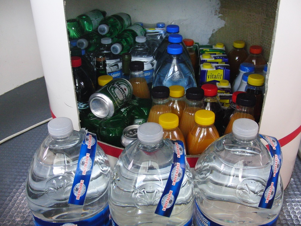 Wir haben für die nächsten 2 Wochen Getränke und Essen eingelagert. Alkohol gibt’s im Moment noch keinen, aber wir trinken auch selten Alkohol. Kann ja noch kommen, wenn wir in Nizza angekommen sind. Dann leisten wir uns einen Champagner.