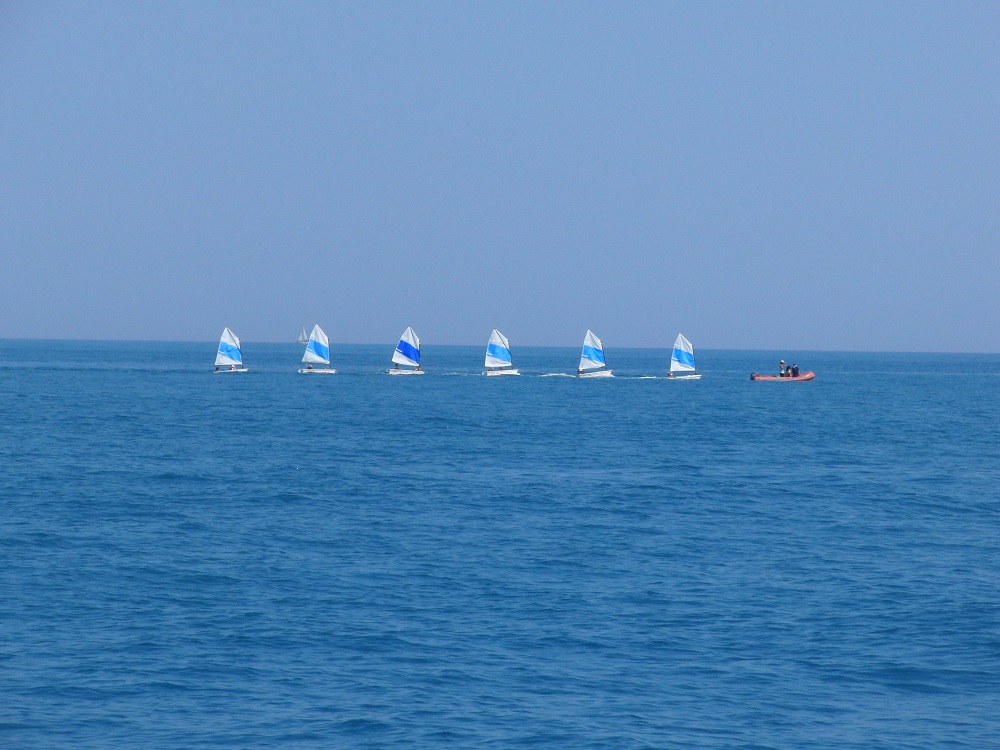 Die Segelschule bringt ihre Schüler zurück in die Bucht. Süß sehen sie aus, die ganz Kleinen erlernen schon Segeln, ganz ohne Furcht und Scheu, einfach spielerisch!