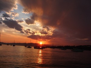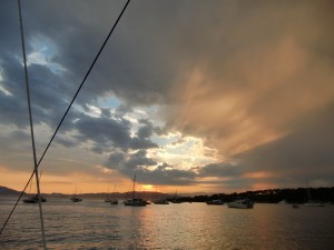20.00 totale Gewitterstimmung, dunkle Wolken, ab und zu ein Donner zu hören. Das ist nicht gut, wo doch der Anker nicht gut hält hier.