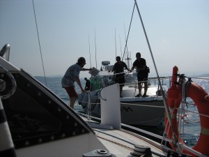 Nach einiger Zeit mit unsserem Papieren in ihrem Schiff, bekommen wir alles wieder zurück und sie fahren weiter. Ich denke, wenn wir noch Segel gesetzt gehabt hätten, wärs nicht so leicht gewesen, uns zu stoppen.