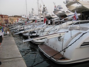So jetzt noch einen guten Ankerplatz finden gleich nach der einfahrt zum Hafen von Saint Tropez. wir ankern in 10 Meter Tiefe und begeben uns durchgestylt mit dem Beiboot in die Stadt. Hier wurrelts von Menschen, Am Hafen stehen riesige Yachten in unglaublich verschiedenen Designs. Das haben wir auch vor Anker schon festgestellt, dass es mittlerweile auch Schiffsdesign in jeglicher Art gibt.