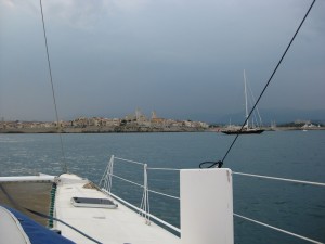 Der Wind ist fast aus, als wir vor Antibes ankommen. Wir ankern natürlich wieder vor der Festung, an unserem alten Platz und fahren in die Altstadt mit dem Beiboot.
