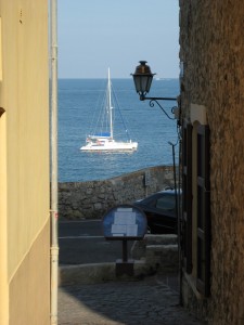 17:00 Wir fahren nochmal nach Antibes hinein shoppen und über die Mauer schaun. Flo will nicht mit, er will sich nicht bewegen. Vielleicht können wir ihn umstimmen!