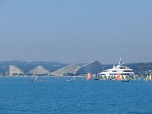 10:00 Wir sind schon unterwegs von Villefranche nach Nizza. Am Morgen hat sich ein Kreuzfahrtsschiff in unsere Bucht geankert und die Passagiere werden wie immer mit Booten in den Ort gebracht.