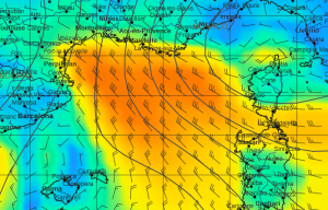 Dort, wo es orange ist, wo der stärkste Wind ist, dort in dieser Düse ist unser Hafen. Schaut nicht gut aus! Wiedermal abwarten und weiter tun im Schiff! In der Vorschau haben wir für nächste Woche zwei riesige Hochdruckgebiete ausgemacht. Wird aber auch Zeit!