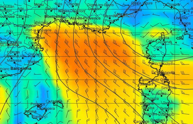 Schaun wir mal auf den Wetterbericht. Es wird bald Zeit daß wir hier wegfahren sonst stehen unsere Kinder in Nizza am Steg und warten vergeblich auf uns. Nur bei diesem Wind ist an ein Ausfahren nicht einmal zu denken. Noch dazu kommt, daß wir die ersten beiden Tage in den Wind fahren müssen und das kann sehr unangenehm werden. Segeln geht auch nicht. Richtung Spanien mit Rückenwind würd es sogar fahrbar sein, aber leider falsche Richtung.
