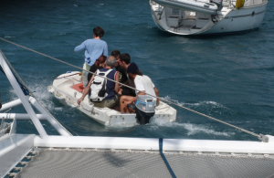 7:00 starker Regen und Gewitter! Kein Schiff ist so wirklich dicht, vielleicht ein neues Schiff, aber Sailhymen ist nicht mehr ganz dicht und es tropft ein bischen hinein, aber nicht schlimm. Schlimmer ist, daß alle Tennisschuhe der Gäste draussen standen und so richtig gewaschen wurden vom Regen, der bis 9:00 dauert. Dazwischen Blitz und Donner und eine Böe mit 38,5 Knoten Wind.