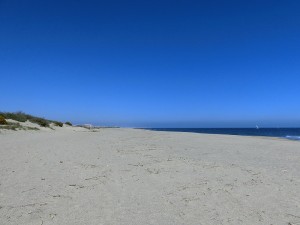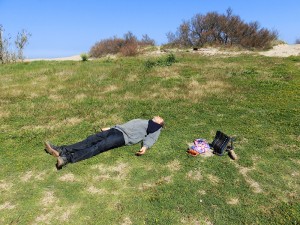 Zurück gehen wir hinter den Dünen windgeschützt und rasten auf einer Wiese.