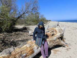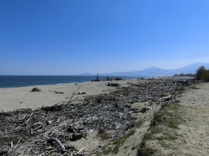 Wir kommen an einen Strand abschnitt, wo scheinbar noch nie das angeschwemmte Holz entfernt wurde.