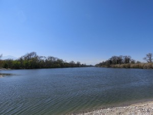 Dann sind wir an der Flußmündung, ein wunderschöne Naturlandschaft. Schnell strömt der Fluß ins Meer, Fische springen im Fluß, Vögel baden, Schilf und viel Grün!