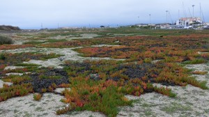 Zum Glück ist dieser Teil der Dünen eingezäunt und alles kann wachsen ohne zertrampelt zu werden. Wenn es regnet, stehen die Kaktus ähnlichen Pflanzen in voller Blüte.