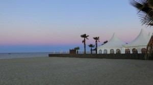 Rosa hellbalu Abendstimmung und letzter Strandbesuch! Morgen früh wollen wir gern den Hafen verlassen und nach Spanien segeln!
