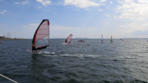 Wir sind genau in der Übungsstrecke der Surfer. Aber sie sind echt süß, sogar die Kleinsten sind schon flott unterwegs, mit Sturzhelm und haben das Segel meist voll im Griff. Ein kleiner Junge hat die Wende nicht geschafft und ist in unserer Ankerkette hängen geblieben. Konnte sich aber selbst wieder befreien, bevor der Trainer mit dem Beiboot da war.
