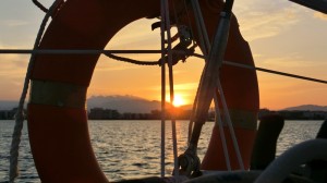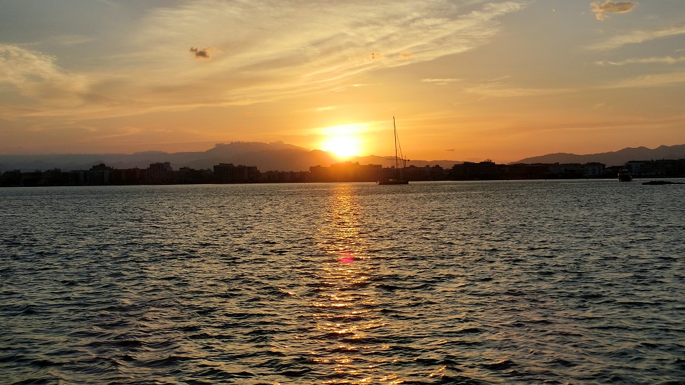 Wir genießen noch die Skyline von Roses! Es ist nett hier, trotzdem wir müssen weiter. Wenn der Wind will, dann morgen früh!