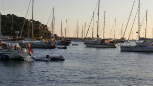 Am Schiff ist schon alles windfest. Wir bekommen Mistral. Alle Boote haben sich bereits ausgerichtet nach Nordost und neu geordnet, von wo der Wind in die Bucht bläst.