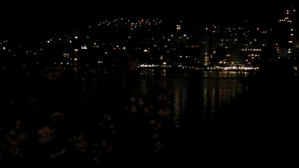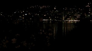 22.00 Wir finden eine Beiboot Anlegestelle, aber wir müssen sehr vorsichtig aussteigen und auf die Straße gehn. Hier sind überall scharfkantige Steine und es ist finster. Doch nicht so eine ideale Anlegestelle.