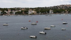 Der Wind hat fast aufgehört und die Boote haben sich wieder ein Stückchen zurück gedreht. die Sonne kommt zeitweise wieder zwischen den Wolken hervor. Ich versuch eine wenig zu schwimmen aber das Wasser ist abgekühlt auf 23 Grad. Aber für ein paar Minuten passt´s gerade.