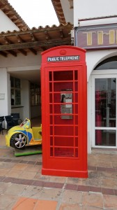 Am Hauptplatz steht für die englischen Touristen eine Telefonzelle, damit sie nach Hause telefonieren können.