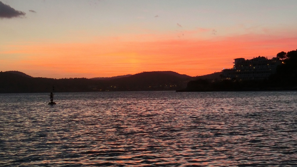 5.00 Im Morgengrauen hör ich Mistral Boen. Sie sind aber nicht so heftig wie wir von unserem Heimathafen her kennen, also können wir ruhig weiter schlafen. Wir haben beinahe 50m Kette auf 3,5m Wassertiefe. das ist mehr als sicher!