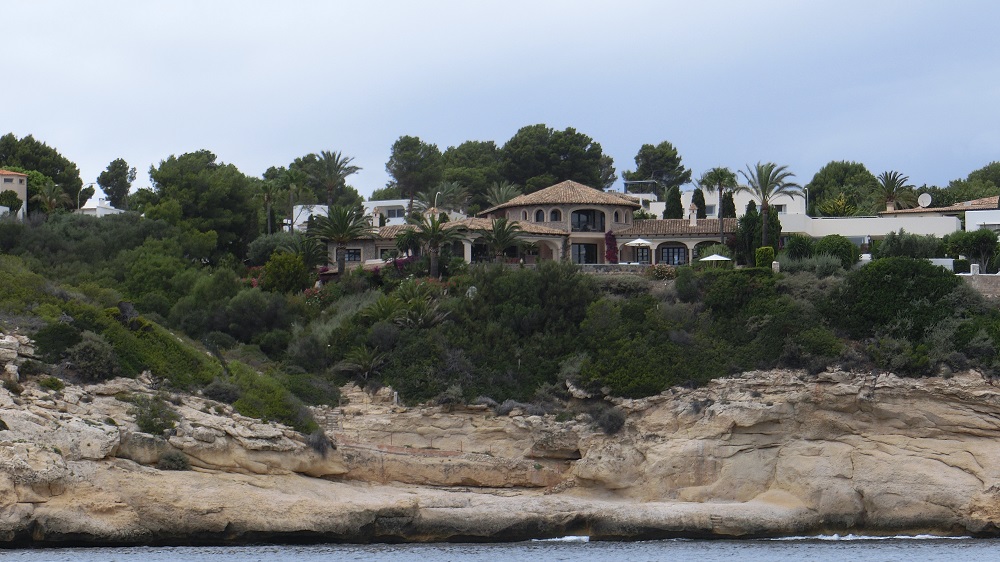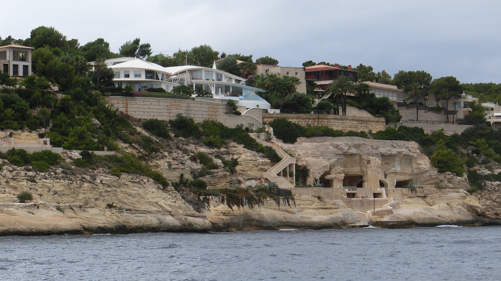 Am Naturschutzgebiet vorbei und ein paar Kaps weiter beginnen die ausgefallensten Villen, die ich je gesehen hab. Hier haben sich einige Architekten verwirklicht. Mit Geld kann man hier alles kaufen, sogar eine Höhle zum Grundstück dazu, die aussieht wie eine ägyptische Ausgrabung. Wirklich unglaublich! Hübsche, die sich an die Landschaft anpassen mit Farbe und Struktur….