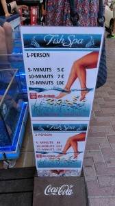 Am meisten schockiert ist Kurt über die Fisch-Spa. Touristen sitzen mit den Beinen in Wassertrögen und lassen sich von kleinen Fischlein die abgestorbenen Hautzellen abnagen. Ob sie dann auch Wasser und Fische wechseln, wenn der nächste Tourist dran kommt? Pfui!