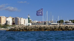 Aller Anfang ist schwer. Auf unserer Erkundung in der Marina stellen wir fest, dass es keinen Beibootsteg gibt, dass wir auch keine anderen Beiboote sehen und dass die Marina komplett eingezäumt ist. d.h. auch wenn wir unser Beiboot jetzt irgendwo in eine Ecke dazustellen, kommen wir nicht aus der Marina raus, bzw. in der Nacht nicht mehr hinein, wenn nicht gerade jemand rausfährt oder geht. Nicht gut! Wir drehen um und fahren aus der Marina raus, die Kaimauer entlang und beobachten an dem kleinen Badestrand, wie 3 Beiboote mit vielen Menschen dort an Land gehen. Ok! Dort gehen sie also an Land.