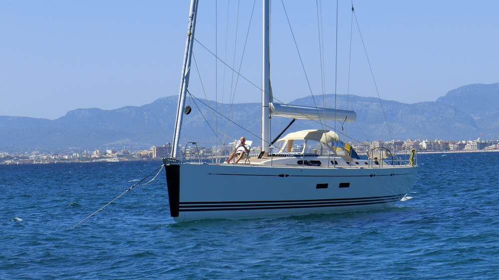 Die Segeleigenschaft heute hat eine interessante Mischung. Unser Katamaran hoppelt sich durch die großen östlichen Dünungswellen der Nacht, dazu kommen Südwind und Wellen und die Wellen und Bewegungen der Yachten, die mit Vollgas auf und ab fahren.