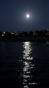 Es ist eine wunderschöne Vollmond Nacht. Wir liegen im Trampolin, leicht zugedeckt und genießen Mond und Sterne bis uns kalt wird vom sanften Nachtwind.
