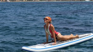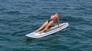 Zurück brauch ich nicht viel zu paddeln, der Wind bringt mich sanft zum Boot zurück. Jetzt noch ein wenig Yoga am Board. Das muss noch sicherer werden und macht riesigen Spass!