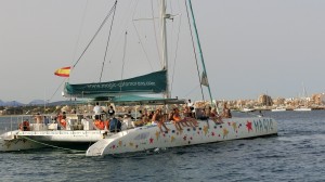 Am Nachmittag kommen drei Ausflugskatamarane. Sie sind 80 Fuß lang, also ca. 28 Meter lang und sehr viele Menschen sind drauf und lassen sich einen Tag herumführen mit Verköstigung. Wir haben beobachtet, dass sie nach Palma zurück fahren.