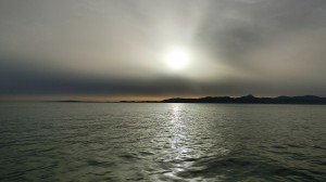 Angenehm ist das milde Wasser. Schön langsam kühl ich mich ab. Fast kein Wind weht und der, der weht kommt vom heissen Land.