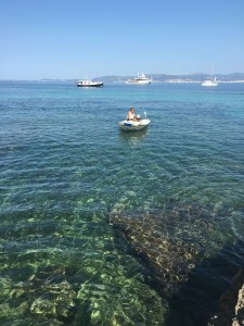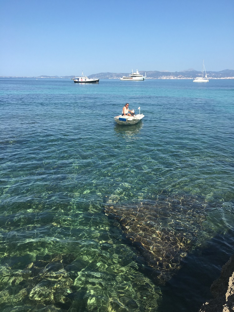 Als wir an Santa Agustin näher kommen, werden die Wellen stärker, nicht der Wind. Niemand liegt hier vor Anker, in diesem Wellengang. Gut, dann fahren wir eben weiter. Wir müssen die Segel entfernen und mit Motor weiterfahren und landen wieder in der Bucht von Palmanova. Hier sind wir besser geschützt, wenn noch mehr Wind und Wellen kommen.